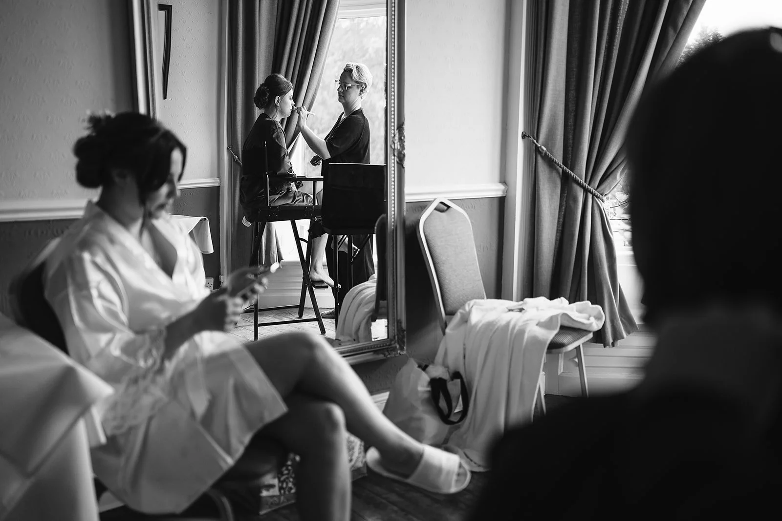 Despite the threat of April showers, we arrived at the venue in the Spring sunshine, starting the day with bridal prep. We had so much fun getting to know Donna’s bridal party in the morning, there was a brilliant atmosphere and everyone was really chilled (there may have also been a few drinks consumed). The rooms had large windows letting in lots of soft light which was perfect for the make up artist and also great for us as photographers.