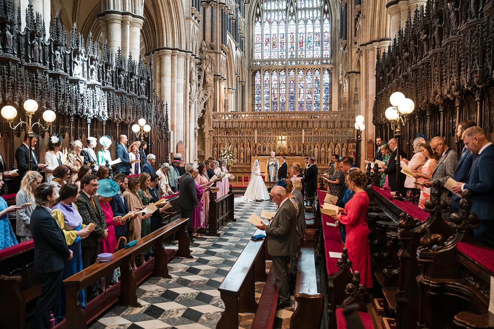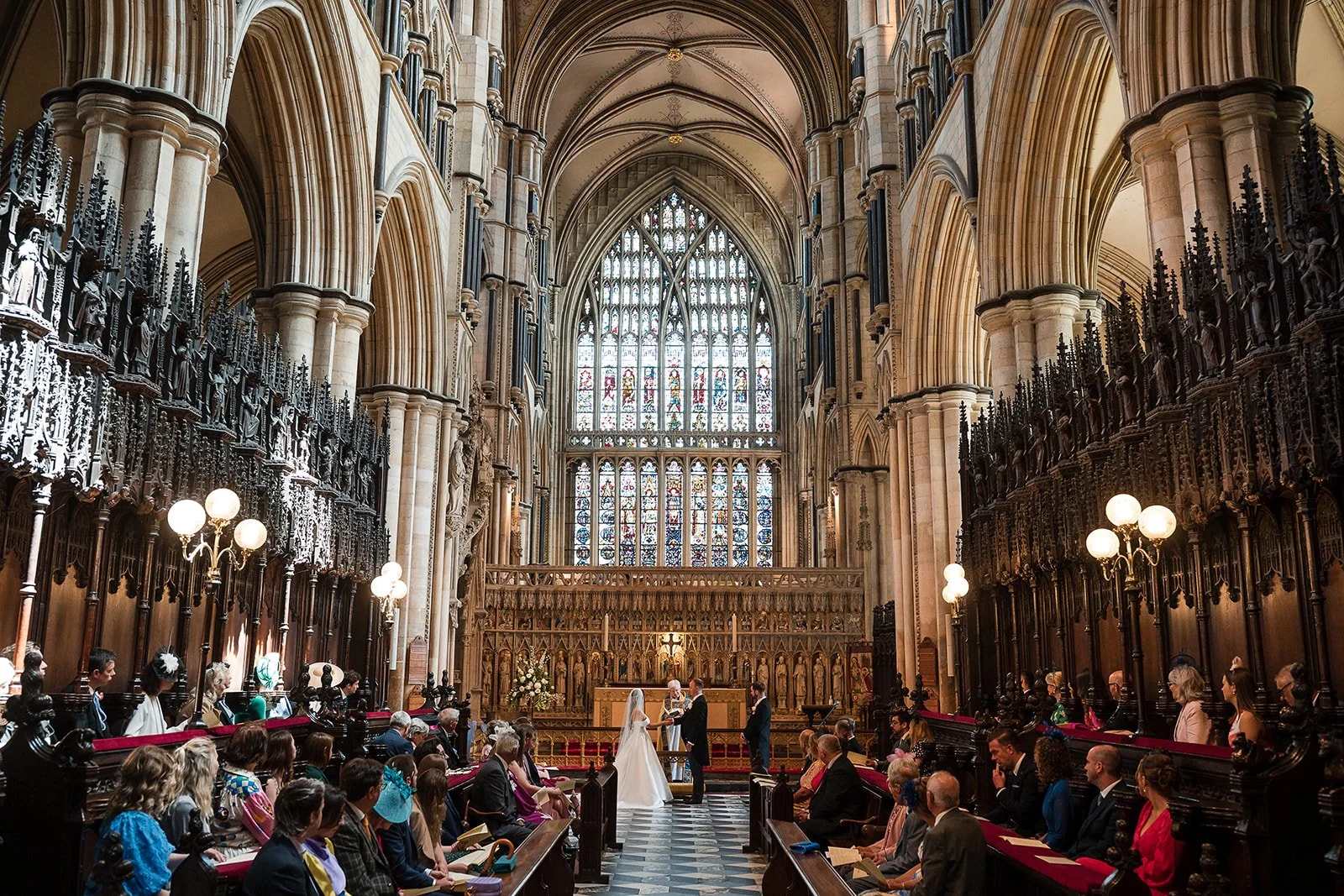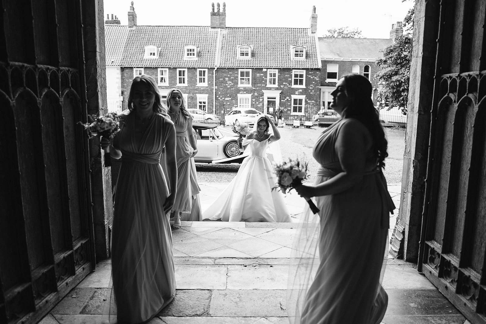 Our day began at Beverley Minster, where we arrived ahead of the ceremony to document guests arriving and the atmosphere building. The Minster is an incredible place, highly detailed, full of history and it was genuinely special to witness Ria and Cavill choose such a meaningful setting for their ceremony.