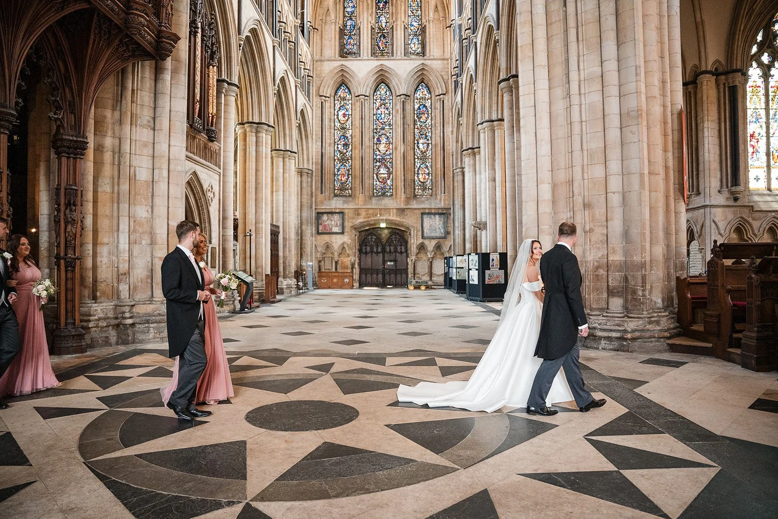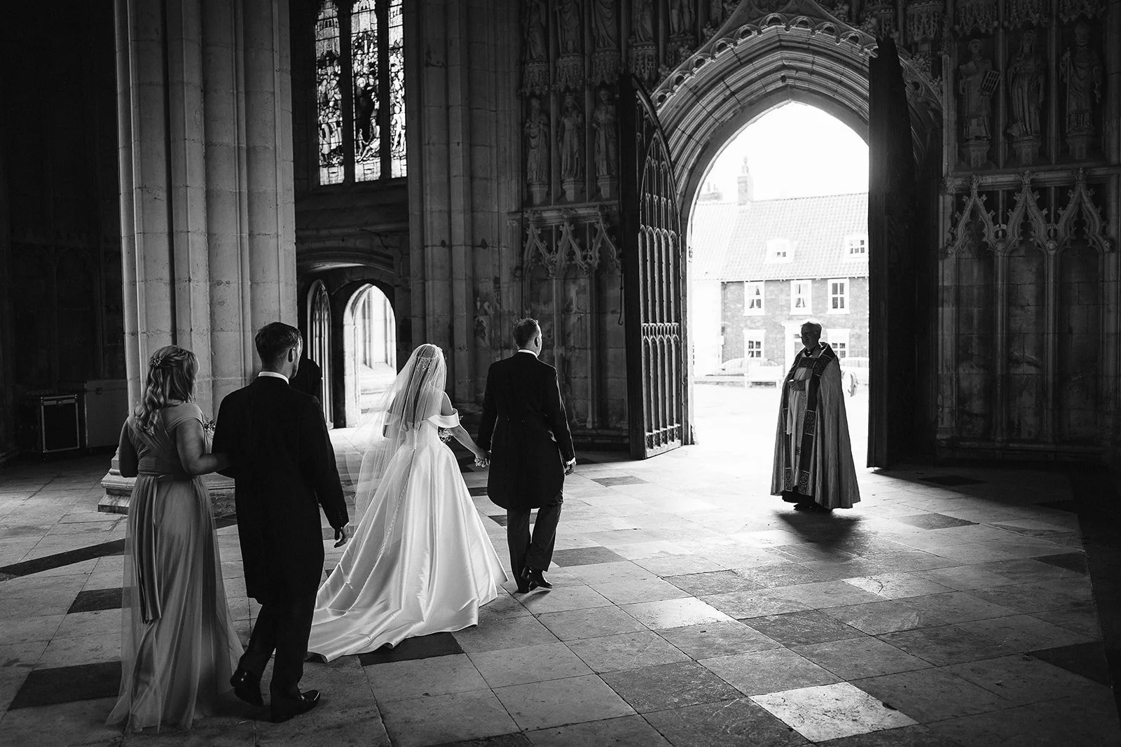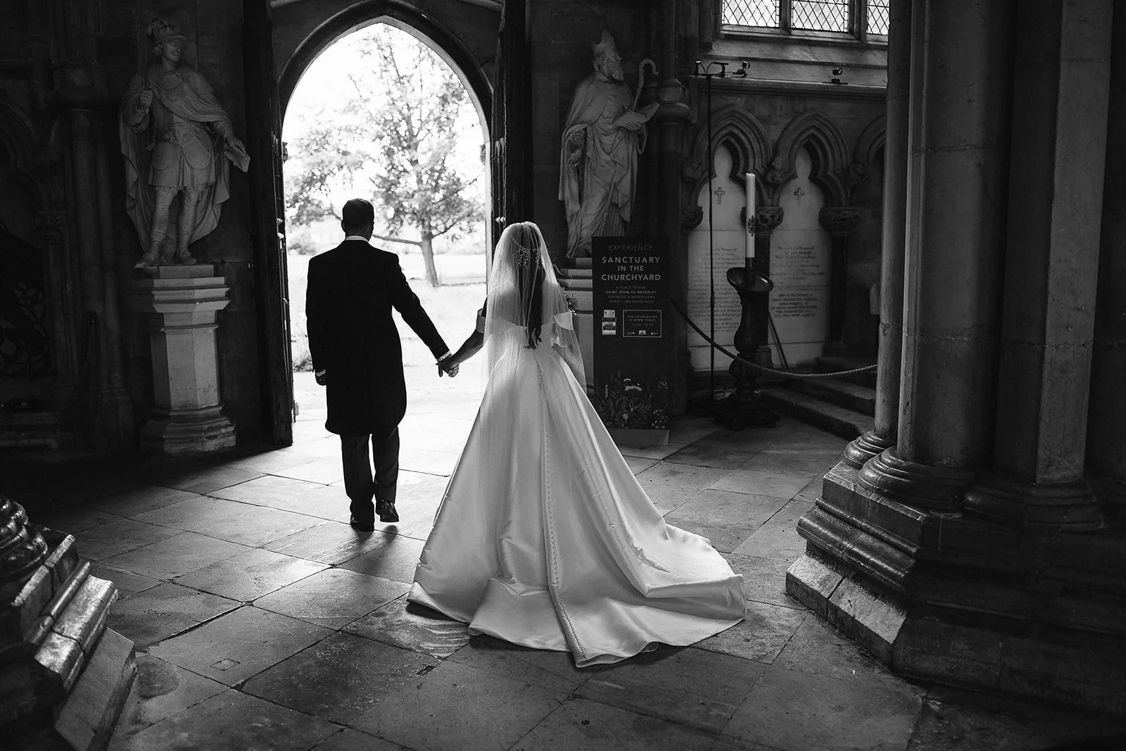 Before heading to Rise Hall, we took a short walk back through the Minster with the couple. Just a few minutes of breathing space, a chance for it all to sink in and a few portraits in a place that had already become part of their story.