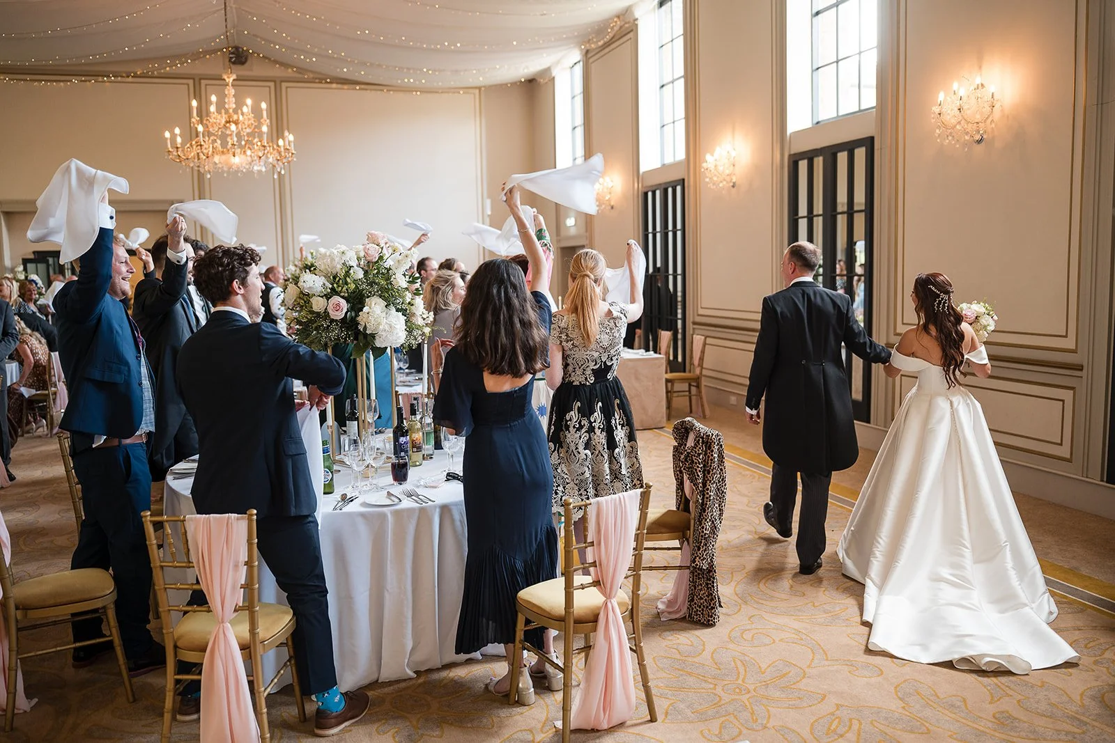 From the ceremony we took all of the guests to the front of the building and lined them up either side of the grand front door, making sure everyone had a big hand full of confetti ready to completely cover the newlyweds as they walked out of the building! This is always such a fun part of the wedding day, it’s brilliant to get everyone involved and to see the moment and emotion play out in front of our cameras. The front of the building was also a brilliant place to get the drone in the sky again to get a group photograph of everyone in front of this beautiful building.