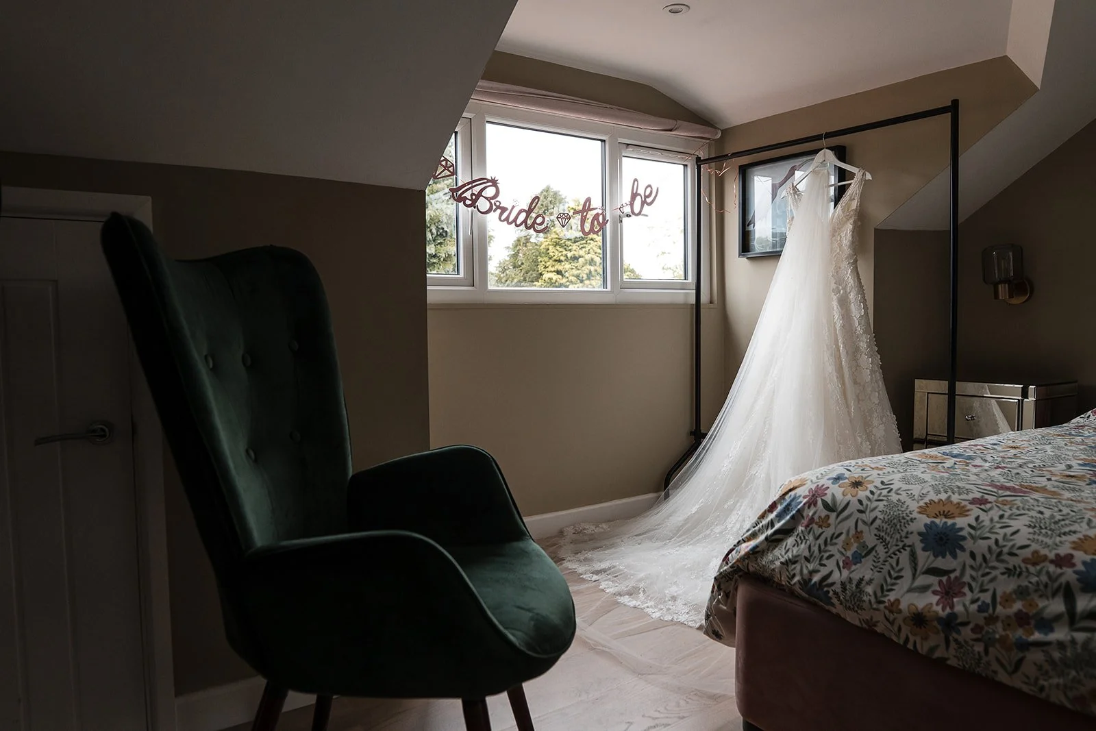 From the driveway we spotted Charlotte waving to us through the window, having safely negotiated the landing of the drone we headed in to see her in one of the biggest and brightest bridal prep rooms we have ever seen. This space was fab, massive windows, beautiful natural light, high ceilings, plenty of mirrors and loads of space to move around which were all perfect room attributes for us and also the hair and make-up artist to work. We were able to move around freely and have a chat with everyone as excitement grew for the day ahead.
