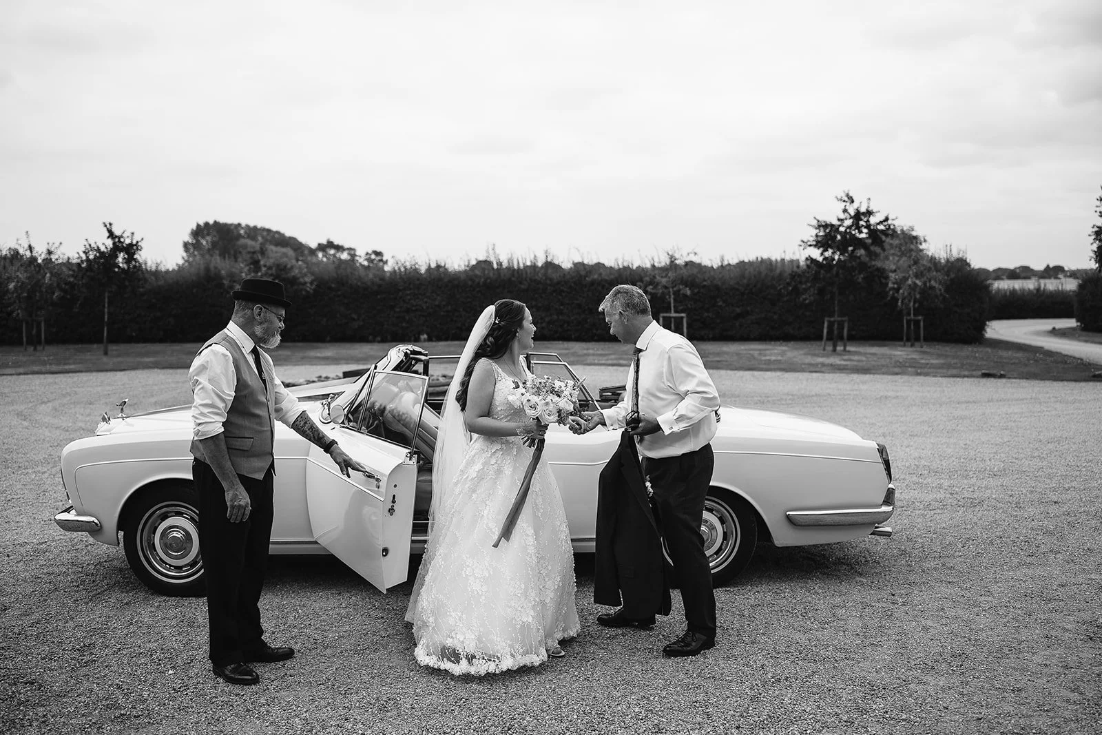 One of the standout visual moments of the day came courtesy of the couple’s soft top Rolls Royce. The driver was more than happy to move the car into position so it could be included in a big group photo of everyone together. To really show off the scene the barn, the people, the moment we used the drone for a single overhead shot. It’s something we always have with us, but only use when it genuinely adds to the story, never as a gimmick.