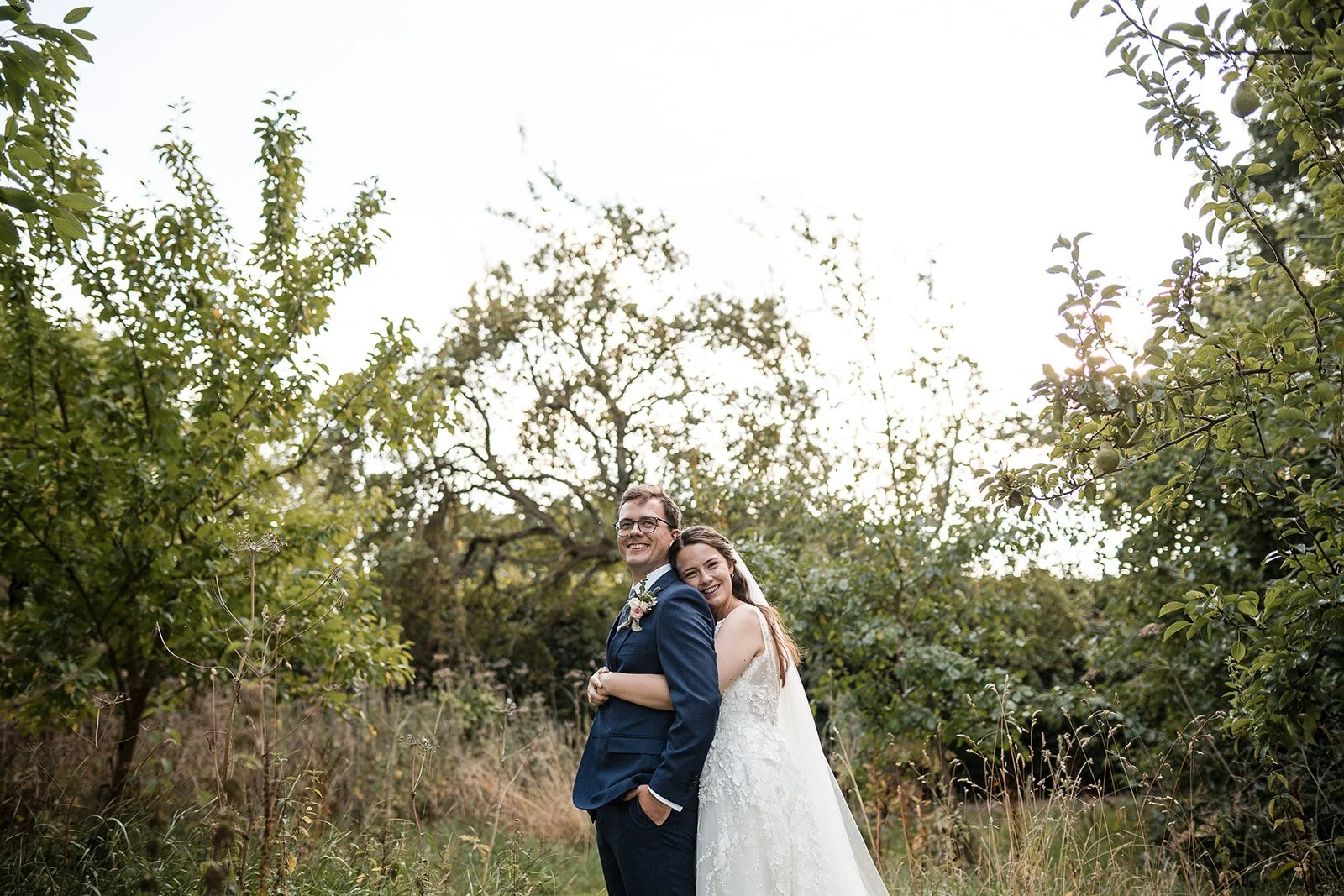 Just before the evening celebrations began, we took a short walk with Emily and Louis through the orchard as the sun dipped lower in the sky. Nothing staged, no pressure just a bit of space for them to be together and let the day sink in before heading back in for the party. It was a calm pause in the middle of a joyful, energetic day and the light couldn’t have been better.
